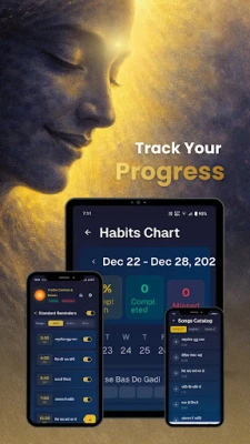Upptäck ett harmoniskt sätt att integrera andlig disciplin med dina dagliga rutiner. Denna app är noggrant utformad för att stödja en yogisk livsstil och erbjuder en unik kombination av vanespårning och praktik av Trafikkontroll. Oavsett om du strävar efter punktlighet i dina andliga stunder eller önskar etablera nya, hälsosamma vanor, är verktyget skapat för att göra din resa enklare, mer inspirerande och konsekvent. Det är ett medvetet steg mot självförstärkning och inre frid, specifikt anpassat för att hjälpa dig att upprätthålla din andliga inriktning.