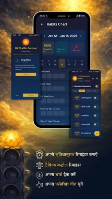 Fördjupa din andliga praktik genom appens inbyggda stöd för Trafikkontroll. Integrera de kraftfulla Trafikkontroll-tiderna sömlöst i din vardag och stärk din disciplin. För att ytterligare anpassa din upplevelse, erbjuder appen språkalternativ på hindi och engelska. Du kan även välja att inkludera eller exkludera musik, både för dina vanor och för Trafikkontroll-övningarna, vilket ger dig full kontroll över din andliga miljö. Denna app är en hängiven följeslagare som hjälper dig att förbli konsekvent, glädjefylld och djupt förankrad i din andliga resa, varje dag.