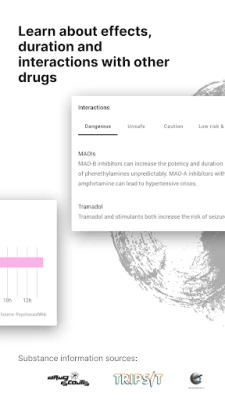 KnowDrugs fungerar som din pålitliga källa för objektiv droginformation och utbildning. Utforska detaljerade profiler för över 200 substanser, från stimulanter som MDMA och amfetamin, till dämpande medel som alkohol och bensodiazepiner, samt psykedelika som 2C-B, LSD och DMT. Genom att erbjuda insikter i önskade och oönskade effekter, varaktighet, potentiella interaktioner och inneboende risker, syftar KnowDrugs till att stärka dig med kunskap. Detta ger dig möjlighet att fatta mer välgrundade beslut, minska potentiella skador och reflektera över ditt eget konsumtionsbeteende gällande psykoaktiva substanser.
